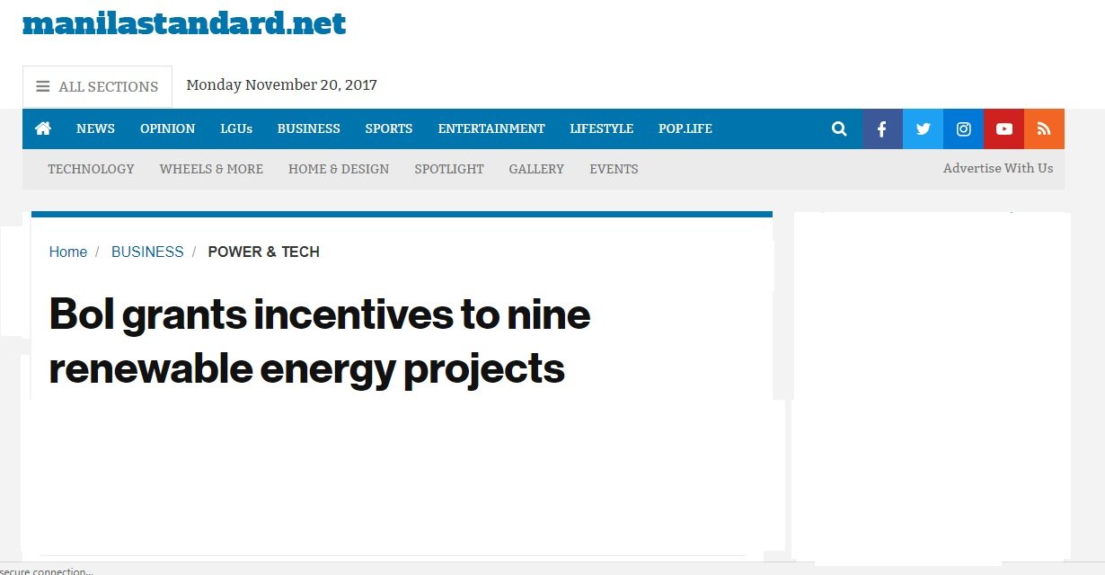 “Production of renewable power is becoming cheaper and it is fast becoming a better alternative towards addressing power-sufficiency and cost-effectiveness in the economic development of our country,†said Trade Undersecretary and BoI managing head Ceferino Rodolfo.