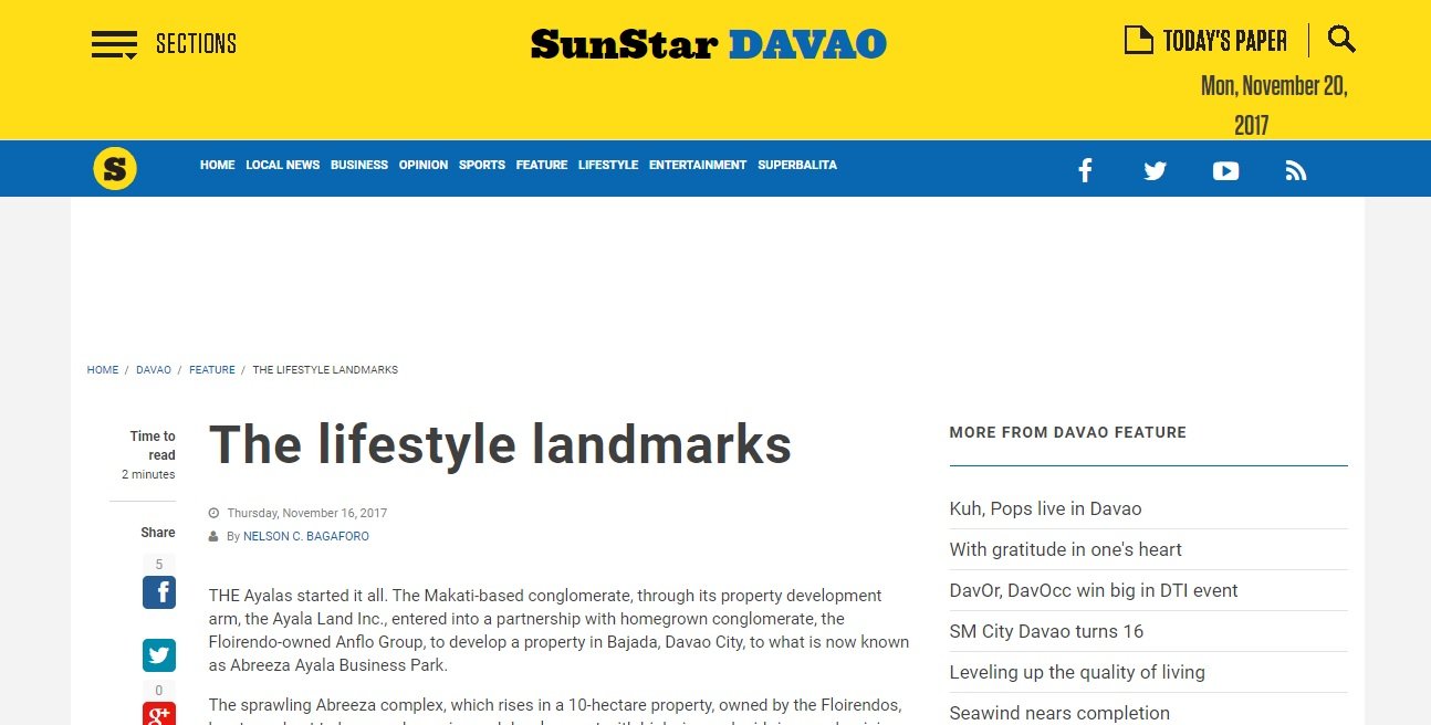 THE Ayalas started it all. The Makati-based conglomerate, through its property development arm, the Ayala Land Inc., entered into a partnership with homegrown conglomerate, the Floirendo-owned Anflo Group, to develop a property in Bajada, Davao City, to what is now known as Abreeza Ayala Business Park.